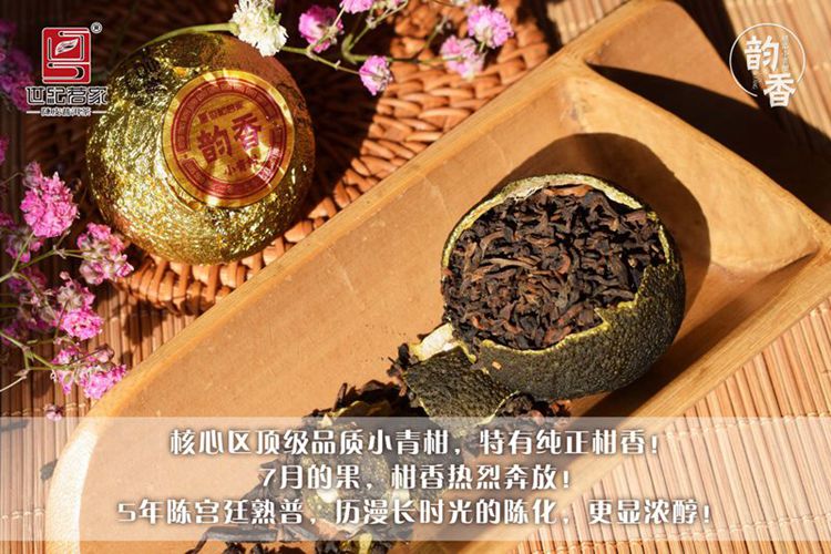 韵香,精品级小青柑的代表,精选柑普搭配,13年沉淀领先制作工艺,打造出精品级口感,细品之下:柑香纯正,清甜温润,甘醇浓郁,韵味悠长……