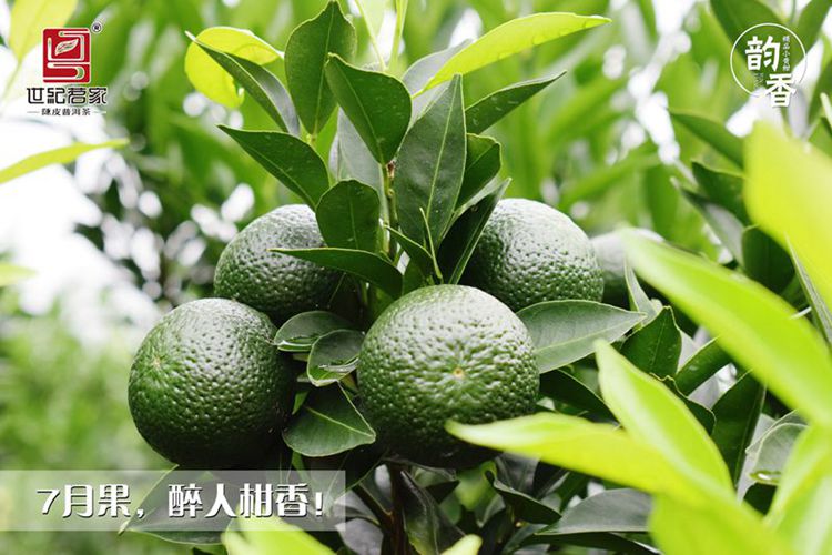 韵香小青柑,散装小青柑的精品代表,特选用7月生理期的柑果。7月的新会,阳光强烈,雨量充沛,7月小青柑,便成了新会柑果最具生命力的阶段。芳香性挥发油达到顶峰,柑香热烈高扬,却也恰到好处,与熟普的融合协调下,释放出别具一格的韵味!